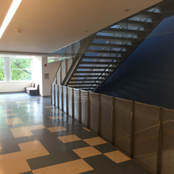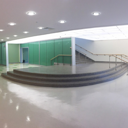 Custom cnc’s acoustical mdf theater panels and stainless steel handrails through-out accentuate the forward thinking design of this LEED Gold building.
